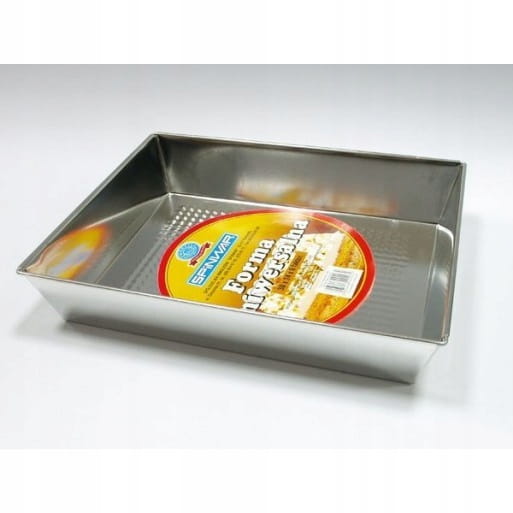 Prostokątna forma do pieczenia wykonana z blachy ocynkowanej przeznaczona do stosowania w piekarnikach gazowych i elektrycznych.