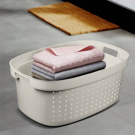 * otwory w kształcie rombu nadają mu nowoczesny charakter i półprzeźroczystość * wyposażony w uchwyty, które ułatwiają przenoszenie* Świetnie sprawdza się do przenoszenia mokrego jak i suchego prania.