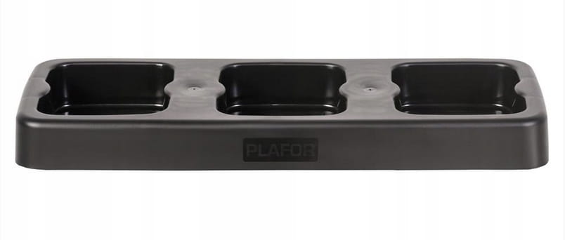 Stojak na 3 kosze Fit Bin 75L firmy Plafor to funkcjonalny i estetyczny sposób na organizację śmieci w domu, biurze lub przestrzeni publicznej. Wykonany z wytrzymałego czarnego plastiku, stojak ten mieści trzy kosze Fit Bin 75L, zapewniając komfortowe i wydajne segregowanie odpadów.