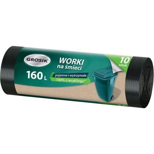 - Wyjątkowo szczelne i mocne worki na śmieci o dużej pojemności 160l.