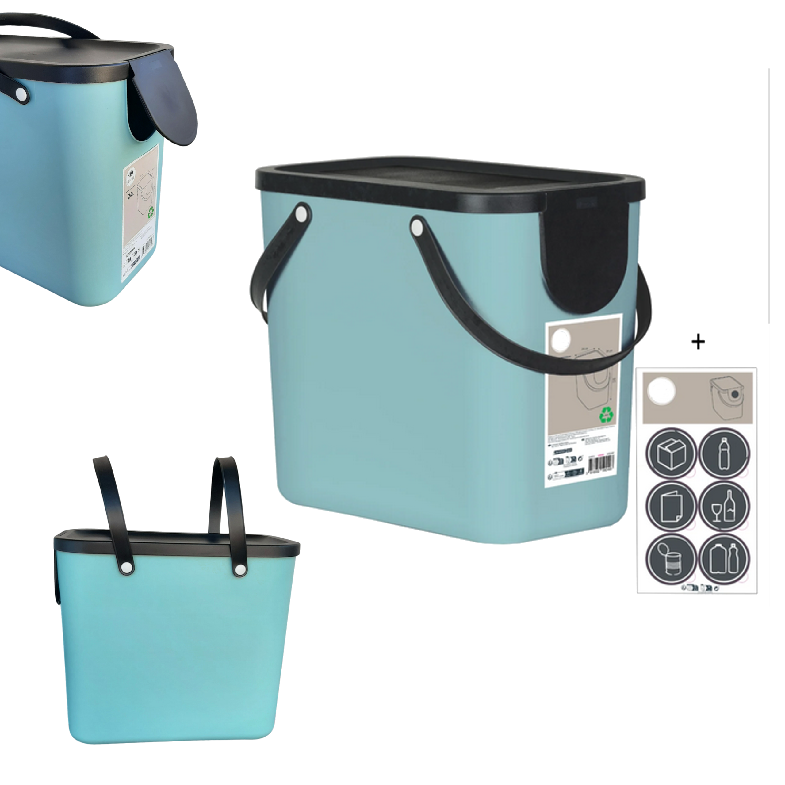 Kosz do segregacji 24l Albula – Nastawny, modułowy, z naklejkami do segregacji