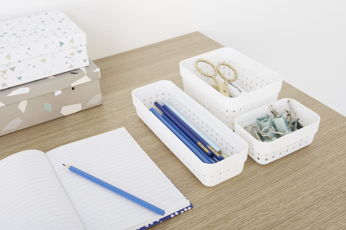 Świetnie sprawdzi się na kosmetyki i akcesoria łazienkowe, przyprawy w kuchni, długopisy i notatki w biurze, a nawet kredki czy klocki w pokoju dziecięcym. Dzięki kilku dostępnym rozmiarom i kolorom łatwo dopasujesz go do swoich potrzeb i wnętrza.