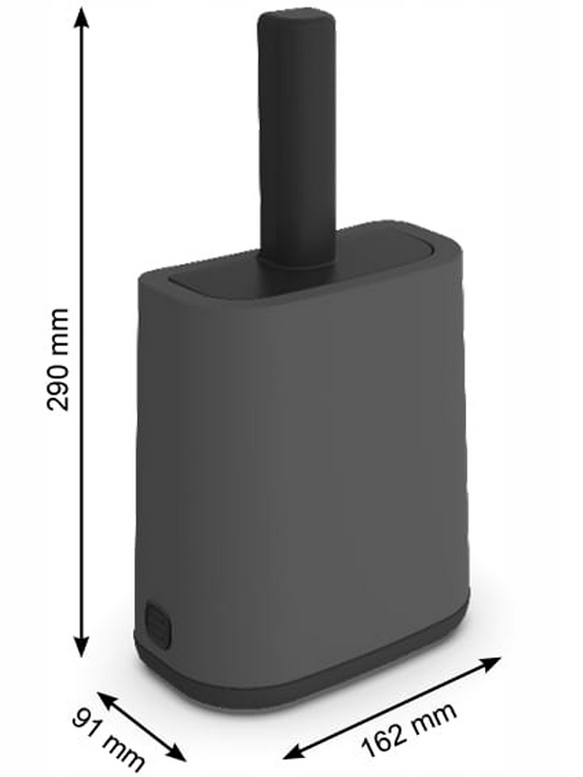 Elegancki uchwyt w kolorze antracytowym pasuje do każdego wnętrza i pełni funkcję pokrywki, skutecznie redukując nieprzyjemne zapachy.