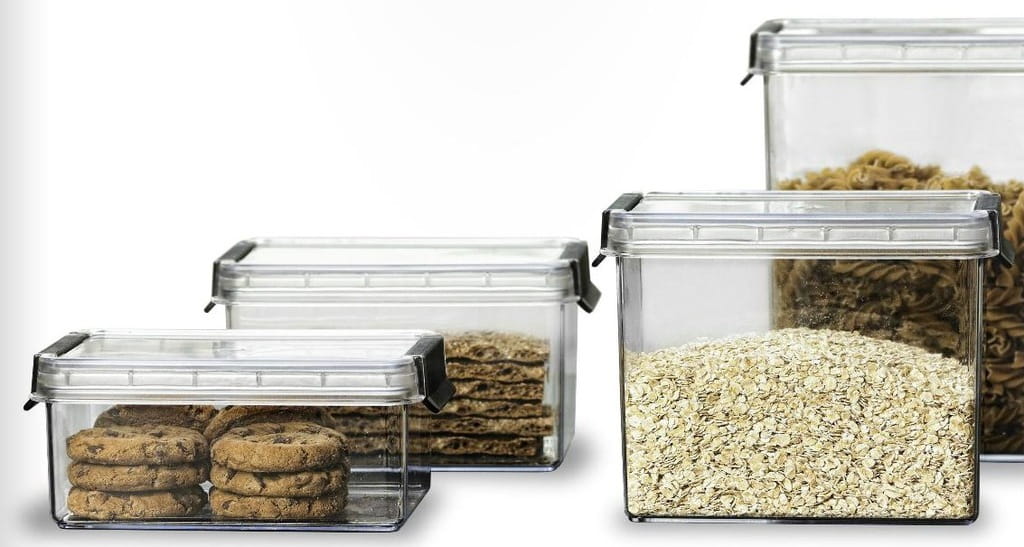 Przeznaczony do przechowywania produktów spożywczych takich jak: płatki śniadaniowe, orzechy, ryż, kasza, mąka, sól, cukier lub inne sypkie artykuły. Pojemnik posiada dwa zatrzaski po obu stronach pokrywy.