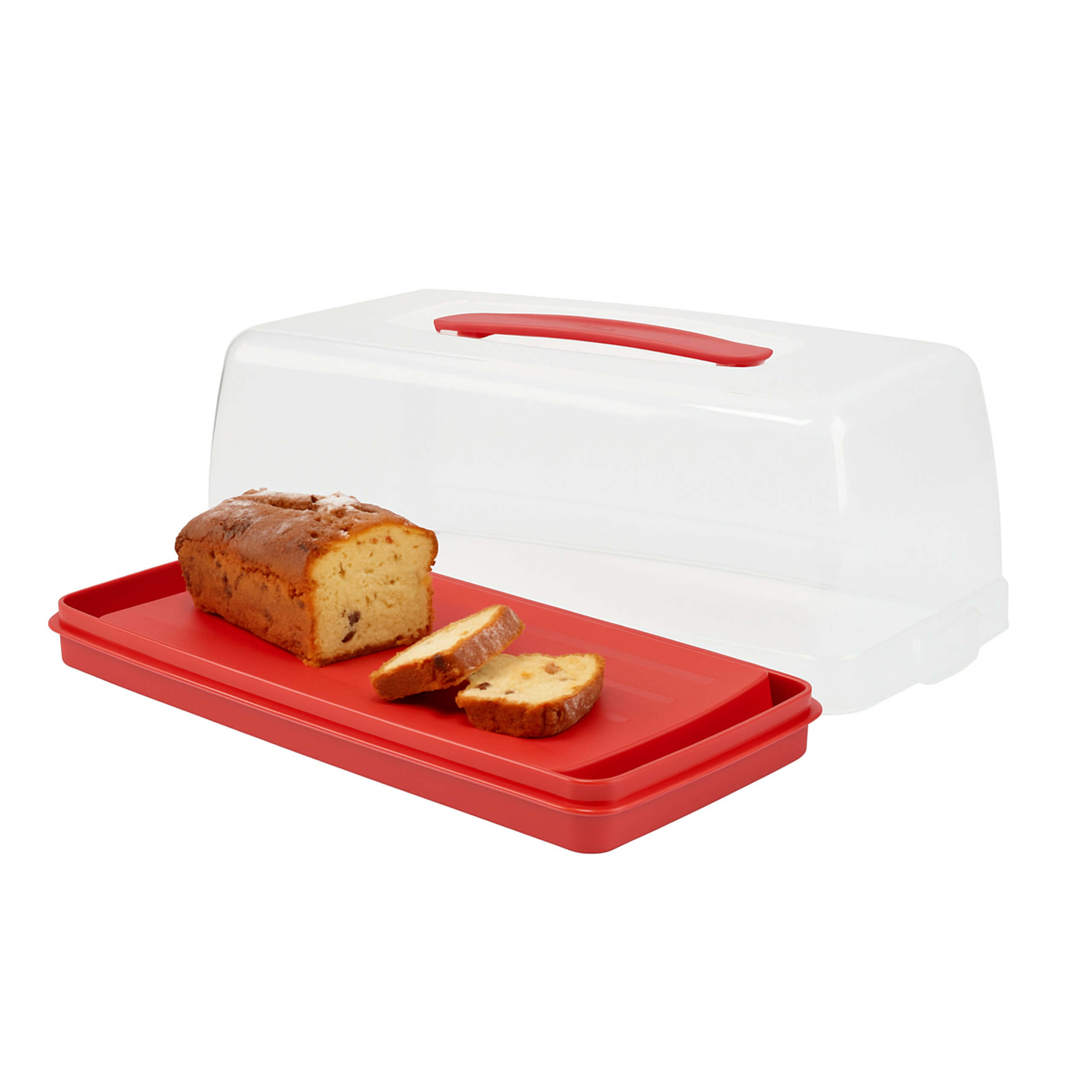 Dzięki poręcznemu uchwytowi bez problemu zabierzesz ciasto, muffinki czy kanapki na piknik, spotkanie rodzinne albo do pracy. Przezroczysta pokrywka pozwala od razu zobaczyć, co jest w środku, a szczelne zamknięcie chroni zawartość przed wysychaniem i przypadkowym otwarciem.