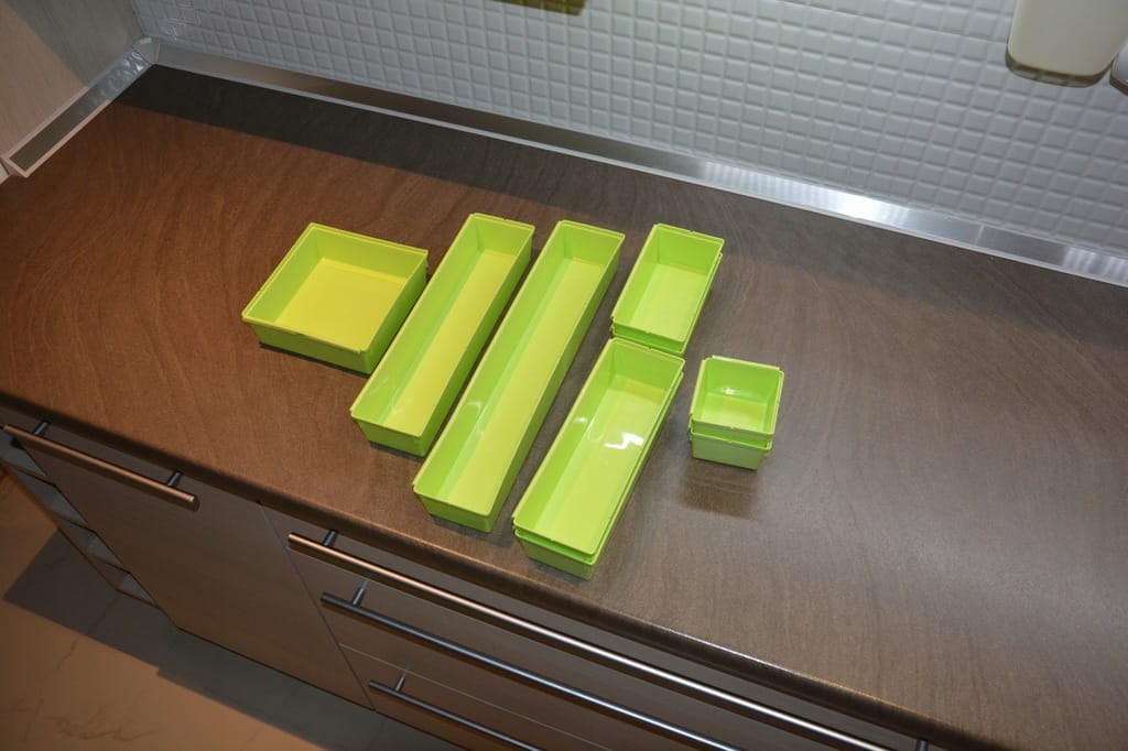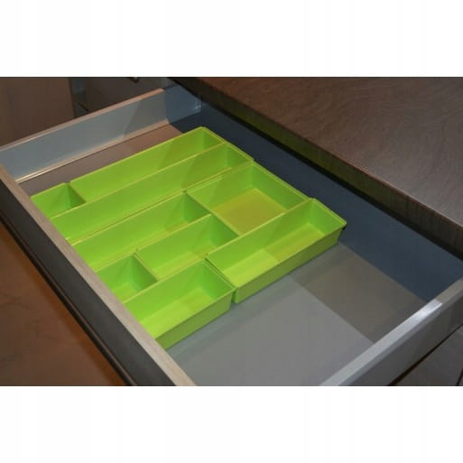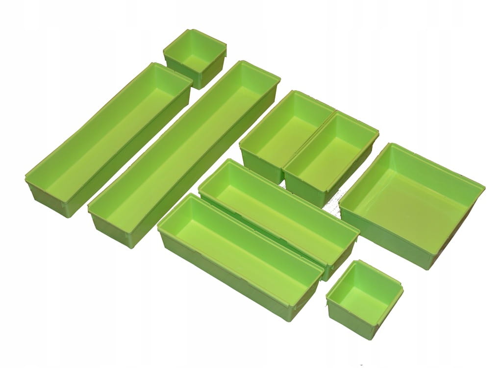 Zestaw organizerów do szuflad do przechowywania drobnych części garderoby, narzędzi, artykułów biurowych, kuchennych itp. Pozwoli Ci utrzymać porządek w szufladzie i sprawi, że Twoje rzeczy będą zawsze pod ręką. Pojemniki wykonane z trwałego tworzywa sztucznego, łatwe w czyszczeniu i zachowaniu porządku.