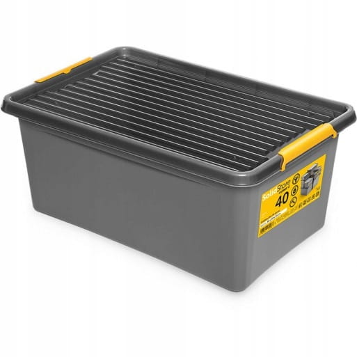 Wytrzymały Pojemnik na kółkach Pudełko z Pokrywką Szary 40l SolidStore Orplast