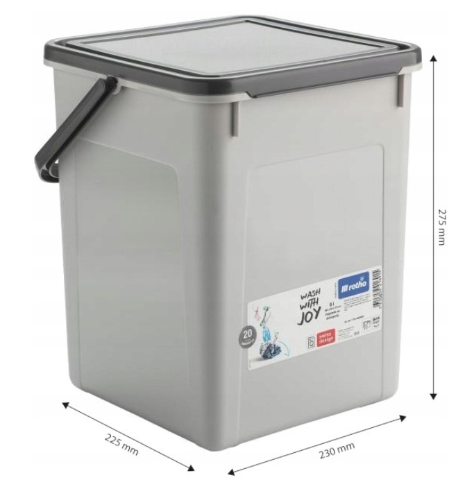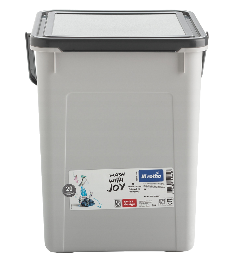 Pojemnik o pojemności 9 litrów to funkcjonalne rozwiązanie do przechowywania proszku do prania, kapsułek oraz detergentów. Jego nowoczesny design i solidne wykonanie sprawiają, że idealnie pasuje do każdej przestrzeni – zarówno w domu, jak i w pralni. Dzięki trwałemu tworzywu sztucznemu oraz praktycznym rozwiązaniom, pojemnik marki Rotho zapewnia wygodę użytkowania i dbałość o porządek.