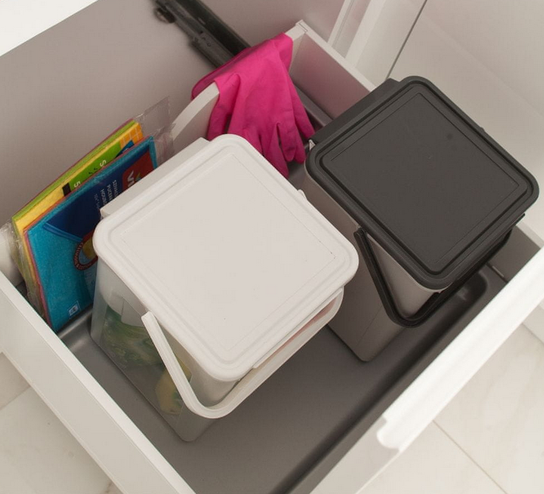 - Poręczny i kompaktowy – pojemnik mimo dużej pojemności (9L) jest łatwy do przechowywania, idealnie pasuje do szafek i półek.