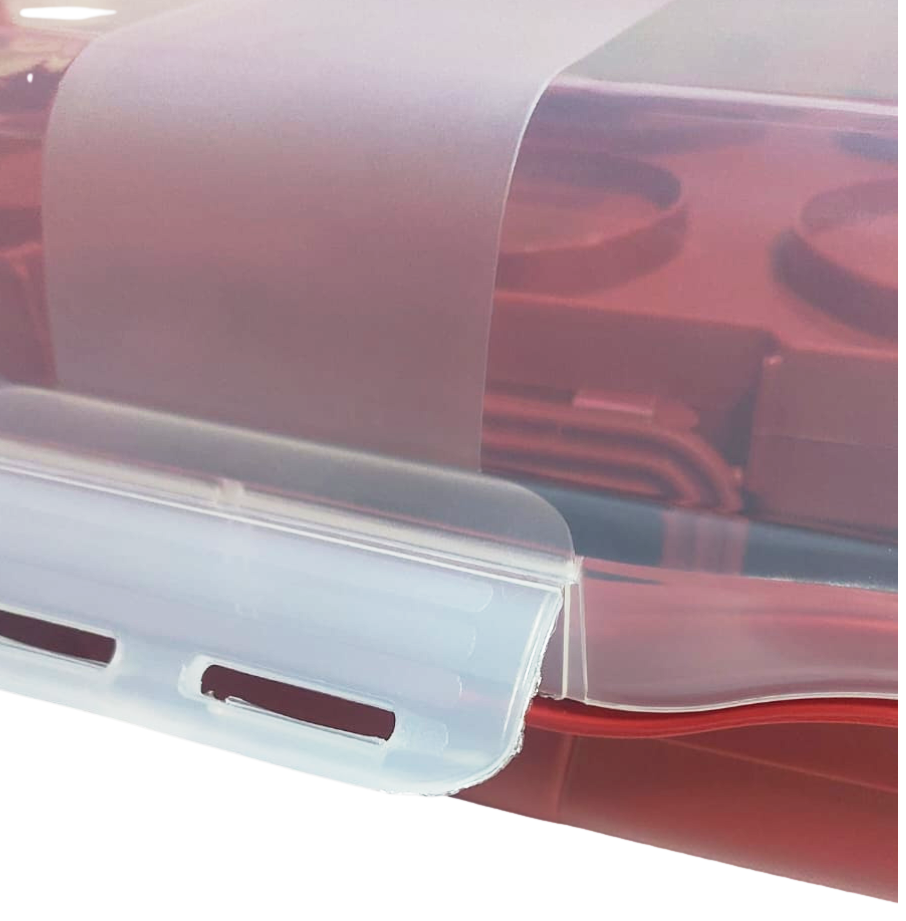 Stylowy design w kolorze intensywnej czerwieni z transparentną pokrywą i czerwoną rączką sprawia, że pojemnik nie tylko jest funkcjonalny, ale też prezentuje się wyjątkowo atrakcyjnie.