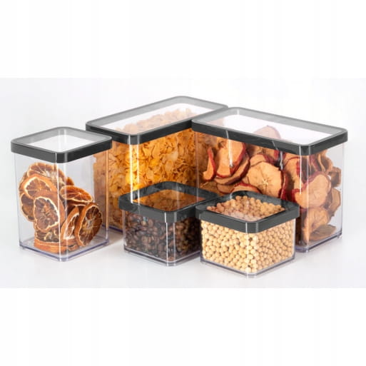 - Funkcjonalność: Różne rozmiary pojemników umożliwiają przechowywanie różnego rodzaju produktów - od makaronu i ryżu po płatki śniadaniowe i bakalie.