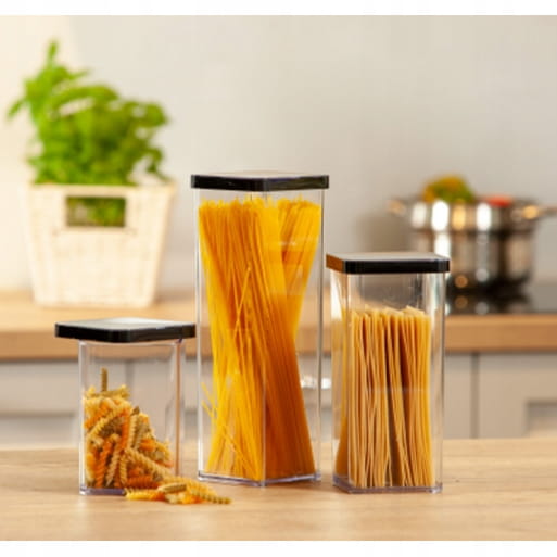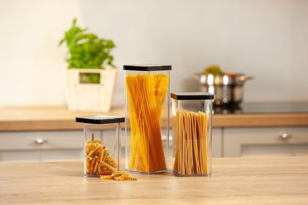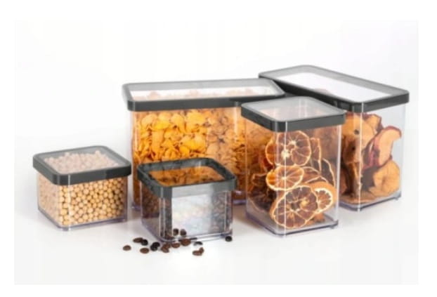 - Funkcjonalność: Różne rozmiary pojemników umożliwiają przechowywanie różnego rodzaju produktów - od makaronu i ryżu po płatki śniadaniowe i bakalie.