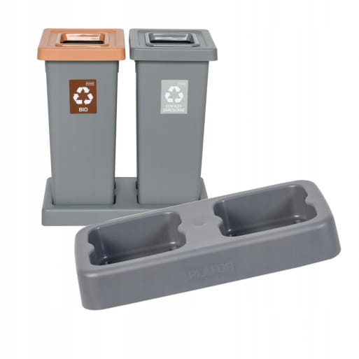 Szukasz sposobu na uporządkowanie swoich odpadów i zadbanie o estetykę w domu? Stojak na 2 kosze Fit Bin 53L firmy Plafor to idealne rozwiązanie dla Ciebie! Wykonany z wytrzymałego szarego plastiku, stojak ten mieści dwa kosze Fit Bin 53L, zapewniając wygodny i efektywny sposób na segregację śmieci.