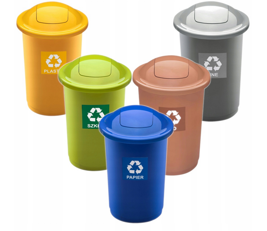 - Naklejka informacyjna: Jasno określa rodzaj odpadów, które należy wrzucać do kosza, co ułatwia segregację.