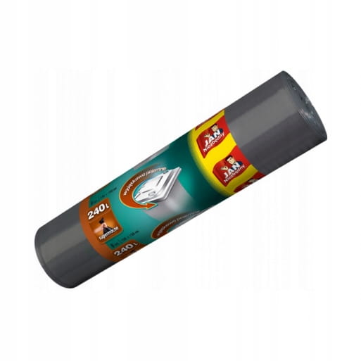 Worki na śmieci Jan Niezbędny 8 sztuk, 240L są bardzo wytrzymałe i niezwykle pojemne. Umieszczone są w łatwej do przechowywania, kompaktowej rolce, a perforacja pozwala na wygodne i łatwe oddzielenie poszczególnych sztuk bez ryzyka ich uszkodzenia.
