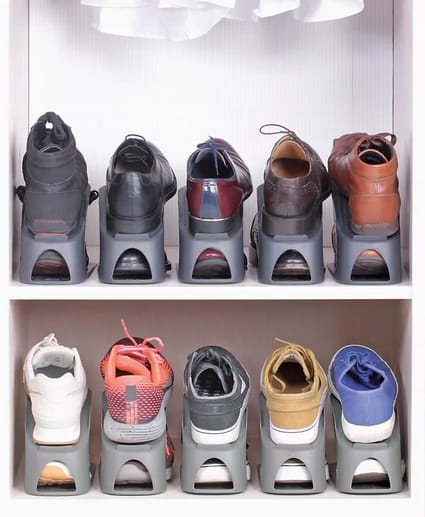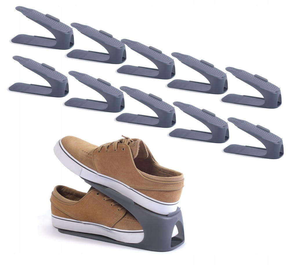 - Oszczędność Miejsca: Dzięki uchwytowi na buty unikniesz brudzenia obuwia poprzez układanie ich na sobie. Oszczędzisz także cenną przestrzeń w swojej garderobie, a nawet zaoszczędzisz aż połowę miejsca.