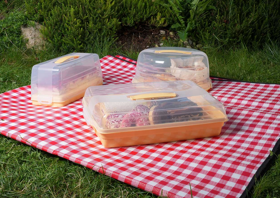Zestaw obejmuje trzy różne pojemniki, dzięki czemu bez problemu dopasujesz odpowiedni rozmiar do każdego wypieku – od tortu, przez keks, aż po klasyczne ciasta prostokątne.