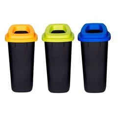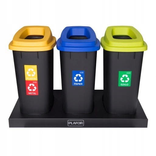 Znakomite nowoczesne kosze + podstawka. Zestaw przeznaczony do segregowania odpadów. Pojemnik o pojemności 90 litrów, ze zdejmowaną pokrywę z otworem. Kosze na śmieci bardzo praktyczne i łatwe w obsłudze. Kosze wykonany w całości z trwałego tworzywa sztucznego ABS. Istnieje możliwość zastosowania jednorazowych worków na śmieci. Na pojemniku znajduje się naklejka, która informuje jakie odpady powinny znaleźć się w środku kosza.