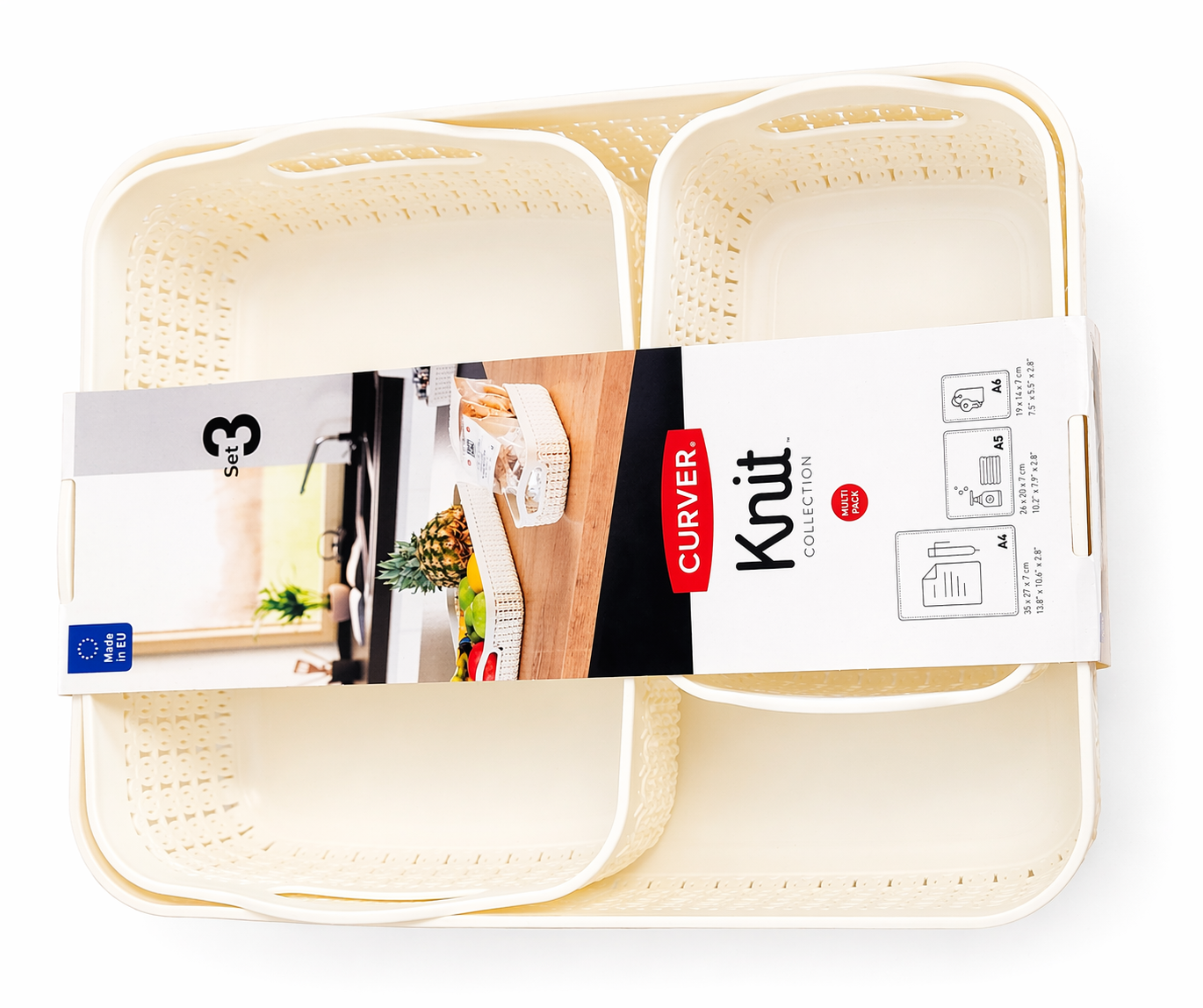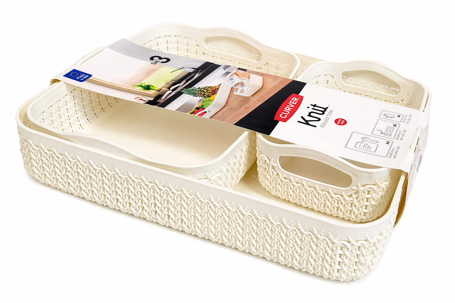 Zestaw tac Curver Knit (A4, A5, A6) w kolorze kremowym